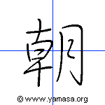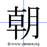 Kanji: 朝 Radical: 月 (つき) | ||||